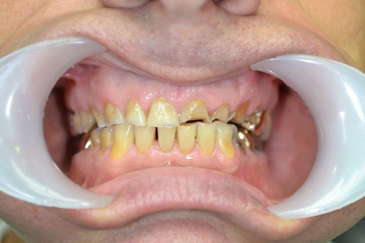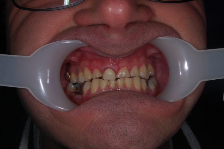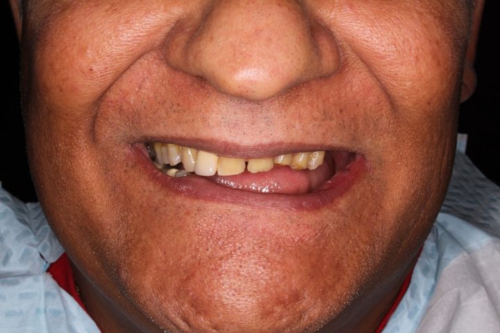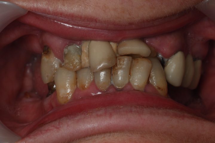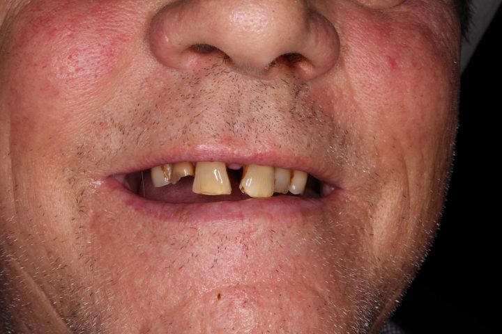 Clive kam aus England, und war im Jahr 2016 bei uns. Früher war er Berufsboxer, deswegen hatte er abgehärmte Zähne. Bis seinem 50. Geburtstag hat er sehr viele Zähne verloren, und die übrigen waren abgebrochen und verfärbt.