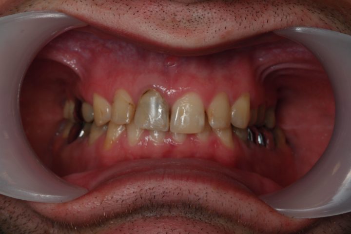Unten links hatte er schon als Kind eine Zahnentfernung, der Ersatz dieser Zahnlücke hat er nicht rasch gedacht. Herr Dr. Szendrei hat ihn aufgeklärt, dass es auch eine Rolle im Kieferschmerz spielt. Daneben war er ästhetisch mit den Zähnen auch nicht zufrieden. Jean-Claude hat so gefühlt, dass er schon 40. Jahre alt ist, die Zeit ist schon gekommen, wann er für seine Gesundheit und für sein Lächeln tun muss.