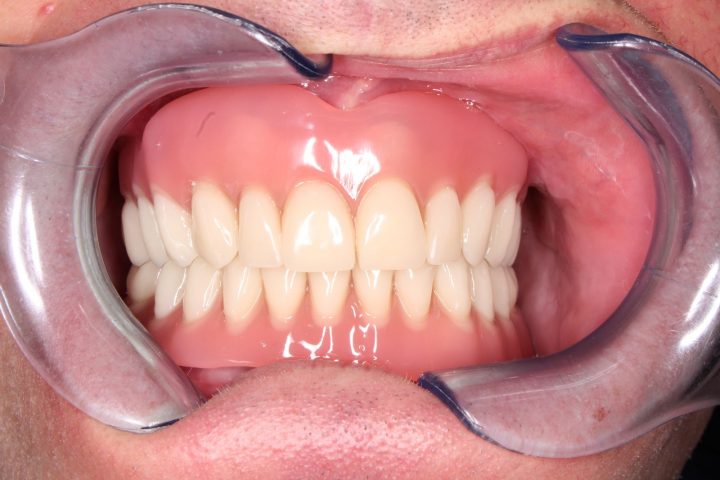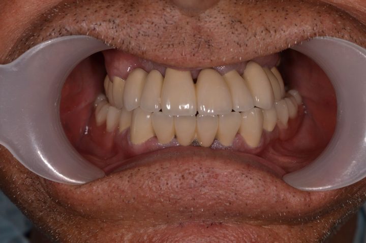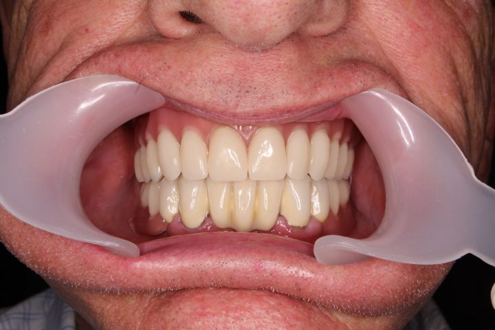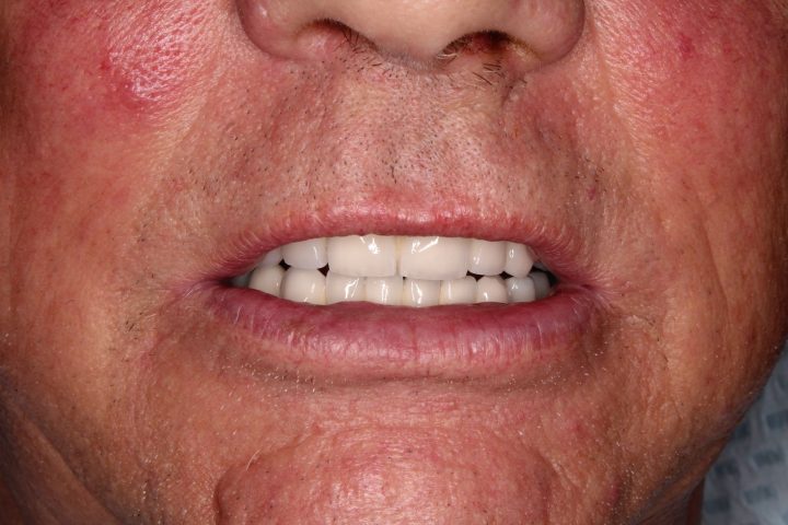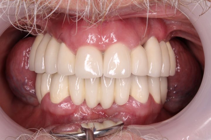 Er hat oben und unten festsitzende Prothese auf Implantaten bekommen, womit er restlos zufrieden war. Diese Prothesen bewegen sich nicht weder beim Kauen, noch beim Sprechen.