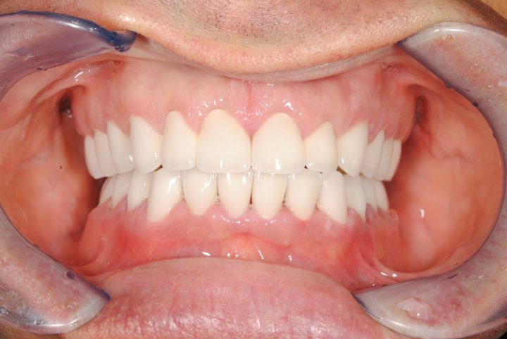 Die Verknöcherung den Implantaten haben wir ihn im Ablauf 8 Tagen oben und unten auf alle Zähne Krone angefertigt, daneben sowohl die Höhe, als auch die Kauenfunktion seines echten Gebisses wiederhergestellt.